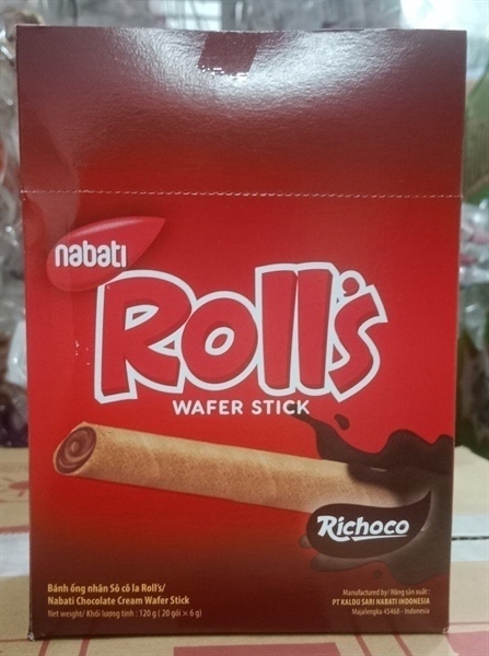 Bánh ống nhân socola roll's Nabati wafer stick 120GR x 6