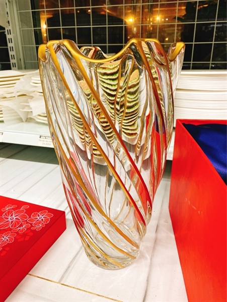 Bình cắm hoa xoắn viền vàng