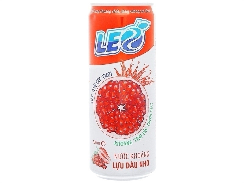 Nước khoáng LEO lựu dâu nho lon 330ml